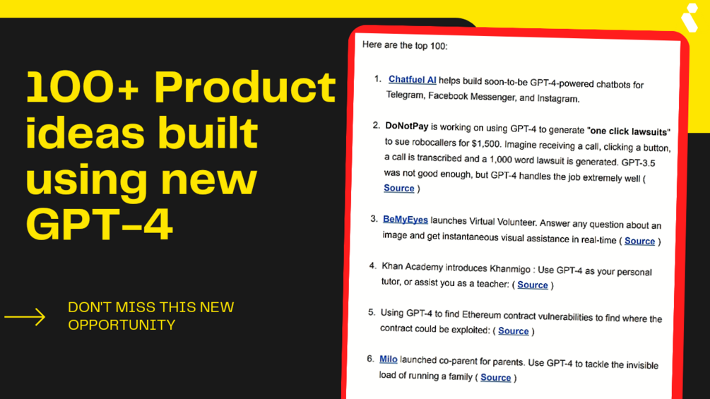 100+ Unique Product Ideas you can build using new powerful GPT-4, don't miss this opportunity, 99% of people don't know about it.